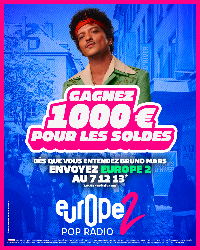 Pour faciliter vos achats dans les commerces en Vendée pendant les soldes d’hiver, cette semaine EUROPE 2 vous offre 1000 € ! 1000 € cash à gagner quand vous entendez…