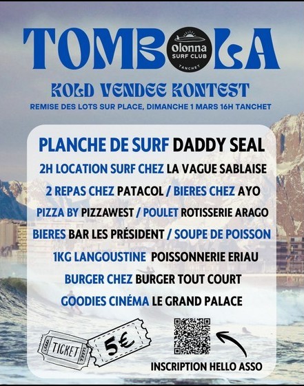 <- Avec aussi une grande tombola ouverte sur Helloasso pour tenter de gagner de beaux lots dont une planche de surf sur mesure !
