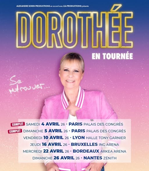 Quinze ans après ses derniers shows à l’Olympia et à Bercy, l’héroïne de toute une génération remonte sur Scène. Notre Dorothée fera son grand retour ce dimanche au Palais des Congrès de Paris. Deux soirées durant lesquelles vous allez pouvoir reprendre « Hou la menteuse » et tous ces refrains populaires qui ont bercé nos années 80/90. Le public a répondu plus vite qu’un générique du Club Dorothée. Les deux dates parisiennes ont été complètes en quelques minutes. Résultat, quatre nouvelles escales s’ajoutent à la tournée de Dorothée : Lyon, Bruxelles, Bordeaux et Nantes entre le 10 et le 26 avril.
