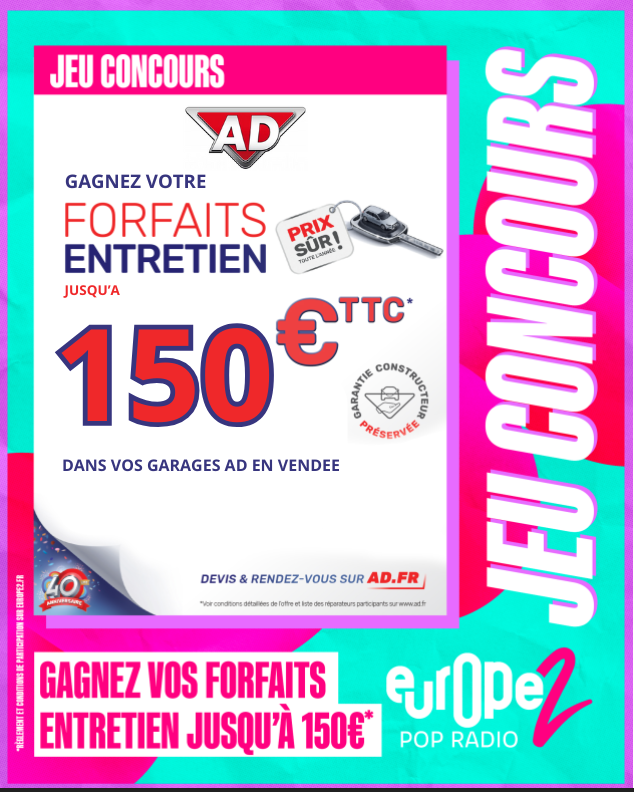 EUROPE 2 vous offre des « forfaits entretien » dans le réseau AD de Vendée !