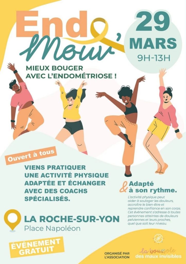 Il s’agira d’une matinée sportive gratuite (le dimanche 29 mars 2026, de 9h à 13h, sur la place Napoléon à La Roche-sur-Yon), animée par des professionnels en Activité Physique Adaptée (APA) et destinée à démontrer les bienfaits concrets de l’activité physique dans la gestion des pathologies chroniques, notamment l’endométriose.